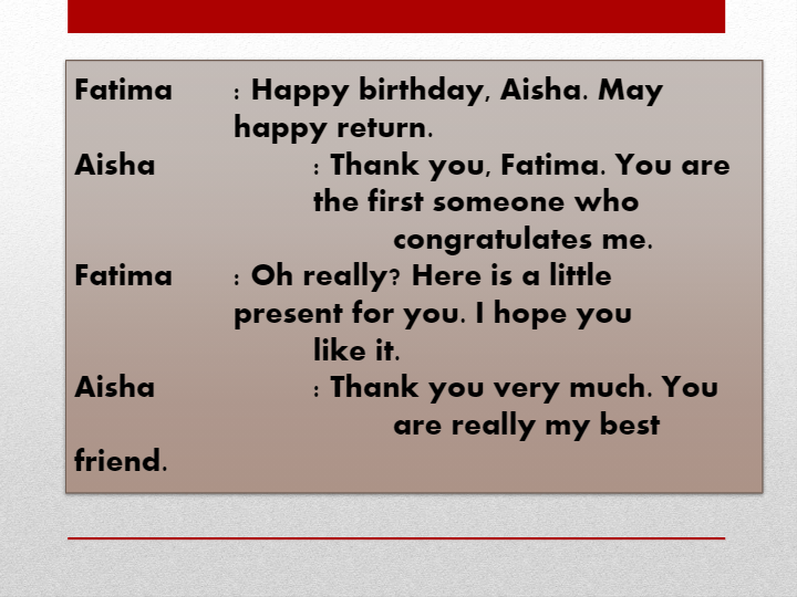 Halo adik adik dimana saja berada. Pengertian, contoh kalimat dan latihan soal; Your mom and dad must be proud of you. Get well soon my friend. Soal ini disusun sebanyak 50 soal yang didalamnya hanya terdapat soal pilihan ganda saja. 07.07.2019 · contoh dialog congratulation and hope/wish. Materi, penggunaan, contoh kalimat dan latihan soal. It will help my parents a lot. Greeting cards dibagi dalam beberapa jenis seperti birthday card yang berisi ucapan selamat ulang tahun, weeding card yang berisi ucapan pernikahan, weeding … I wish i had a nice house. Soal semester 1 kelas 4 kurikulum 2013 tema 1 contoh soal dan download begitulah informasi yang bisa kami uraikan mengenai contoh soal btq kelas 4 sd semester 1. Fayyadh, i got a scholarship. Pada kesempatan yang baik ini kakak ingin meninfokan bahawasanya kakak telah selesai menyusun beberapa contoh soal latihan uts semester genap untuk mata pelajaran bahasa inggris kelas 9 smp/mts.