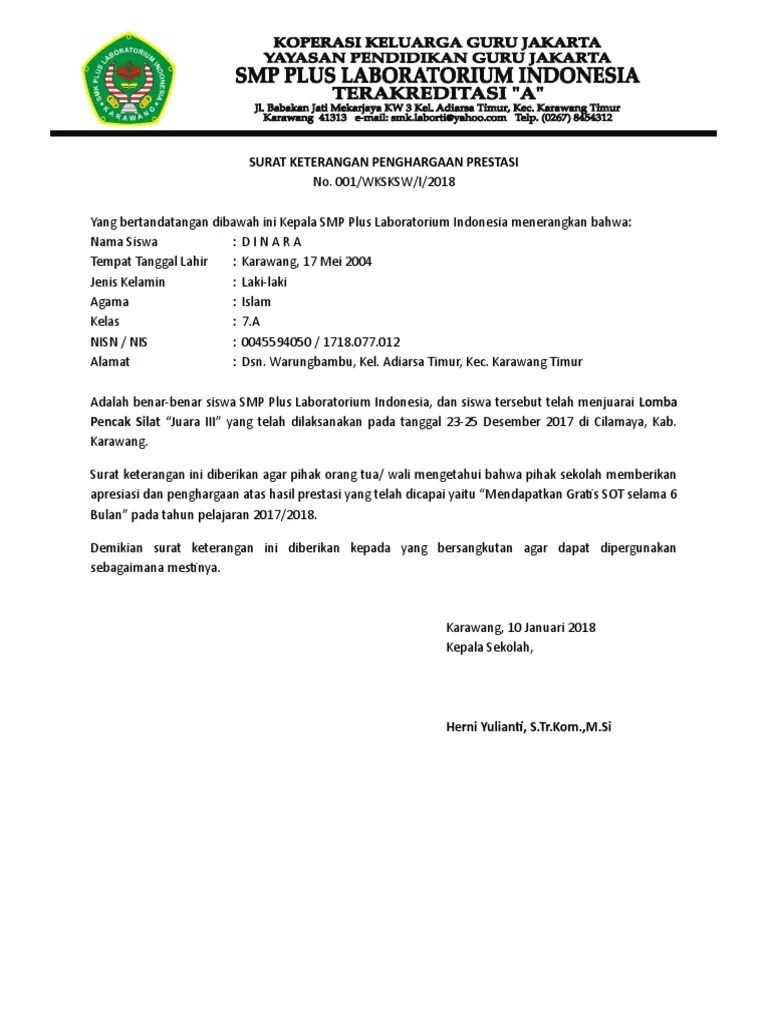 Surat Keterangan Prestasi Dari Sekolah : Surat Keterangan Hasil Penilaian Laporan Prestasi Tersebut Antara Lain Juara Umum Olimpiade Fisika : Pemerintah kabupaten jombang dinas pendidikan sekolah dasar negeri senden jl.